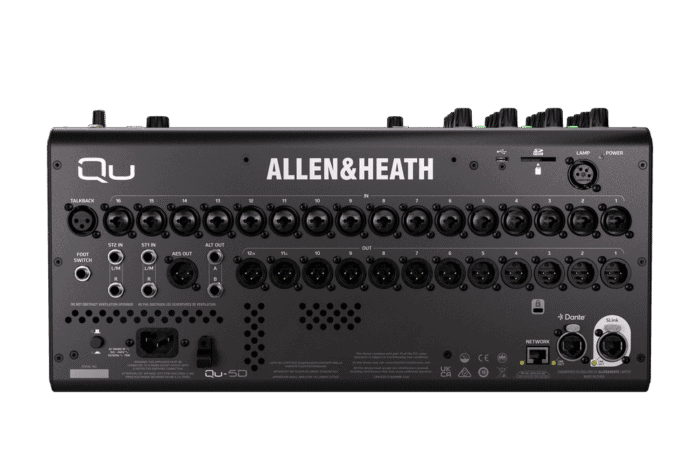 The Allen & Heath Qu-5D is a cutting-edge 96kHz digital mixer built for professional live sound, broadcast, studio, and AV applications. Engineered with XCVI FPGA processing and integrated Dante networking, this 19″ rack-mountable powerhouse delivers premium audio performance in a compact form.