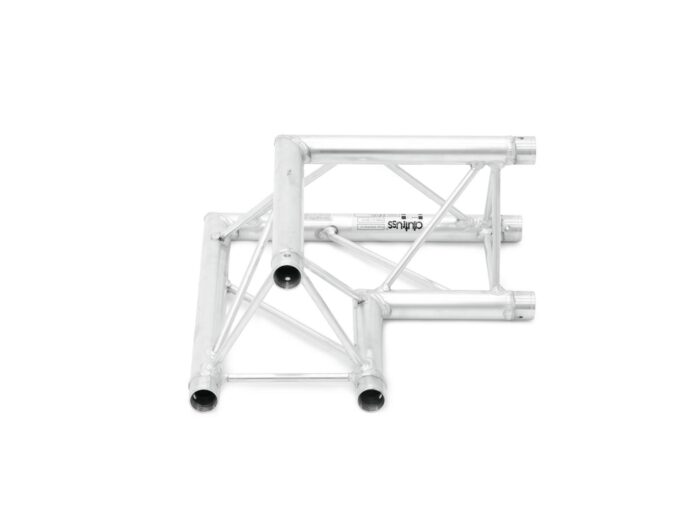 DECOLOCK DQ3 3-point truss systemDECOLOCK DQ3 is a 3-point truss system made of aluminum. The individual elements are connected via three cones, pivots and pins.The advantage of the conical connection system is that the cones completely fit into the main chords so that highest load capacity is guaranteed. The Quick-Lock system enables fast, efficient and highly aesthetic assembly when the truss constructions are frequently assembled and dismantled.The three main chords are made of 35 mm aluminum tube with 2 mm wall thickness and offer sufficient strength at a low weight. The braces have a diameter of 10 mm with 2 mm wall thickness and provide the system with a decorative appearance.With DECOLOCK, you can realize compact installations with low self weight, e. g. for shop displays, shop decorations, exhibitions, interior design, fair booths, discotheques and theatres.DECOLOCK is primarily designed for decorative installations and can be used for permanent or temporary installations due to its highly aestethic appearance. The advantages of this system are the compact construction with 220 and 195 mm outer dimensions, low weight, optimum strength along with easy and quick assembly.The documentation of this truss system is closely related to the Codes of Practice SQ P1 – Truss Systems published by the VPLT/PLASA. The load table as calculation base can be downloaded from the Internet before buying the product!Please note: this truss system must never be combined with other systems!