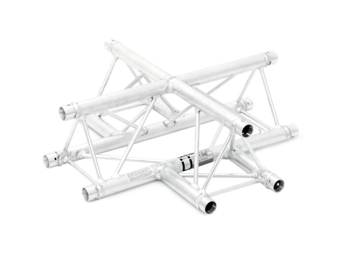 DECOLOCK DQ3 3-point truss systemDECOLOCK DQ3 is a 3-point truss system made of aluminum. The individual elements are connected via three cones, pivots and pins.The advantage of the conical connection system is that the cones completely fit into the main chords so that highest load capacity is guaranteed. The Quick-Lock system enables fast, efficient and highly aesthetic assembly when the truss constructions are frequently assembled and dismantled.The three main chords are made of 35 mm aluminum tube with 2 mm wall thickness and offer sufficient strength at a low weight. The braces have a diameter of 10 mm with 2 mm wall thickness and provide the system with a decorative appearance.With DECOLOCK, you can realize compact installations with low self weight, e. g. for shop displays, shop decorations, exhibitions, interior design, fair booths, discotheques and theatres.DECOLOCK is primarily designed for decorative installations and can be used for permanent or temporary installations due to its highly aestethic appearance. The advantages of this system are the compact construction with 220 and 195 mm outer dimensions, low weight, optimum strength along with easy and quick assembly.The documentation of this truss system is closely related to the Codes of Practice SQ P1 – Truss Systems published by the VPLT/PLASA. The load table as calculation base can be downloaded from the Internet before buying the product!Please note: this truss system must never be combined with other systems!