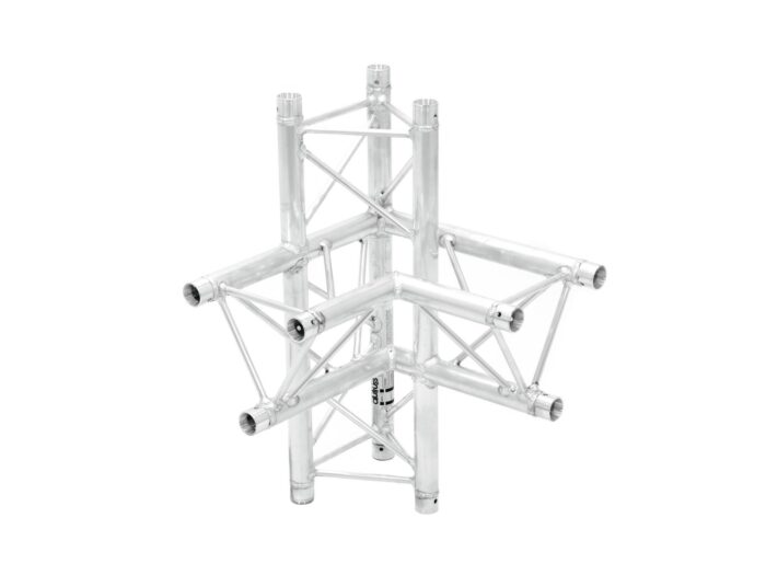 DECOLOCK DQ3 3-point truss systemDECOLOCK DQ3 is a 3-point truss system made of aluminum. The individual elements are connected via three cones, pivots and pins.The advantage of the conical connection system is that the cones completely fit into the main chords so that highest load capacity is guaranteed. The Quick-Lock system enables fast, efficient and highly aesthetic assembly when the truss constructions are frequently assembled and dismantled.The three main chords are made of 35 mm aluminum tube with 2 mm wall thickness and offer sufficient strength at a low weight. The braces have a diameter of 10 mm with 2 mm wall thickness and provide the system with a decorative appearance.With DECOLOCK, you can realize compact installations with low self weight, e. g. for shop displays, shop decorations, exhibitions, interior design, fair booths, discotheques and theatres.DECOLOCK is primarily designed for decorative installations and can be used for permanent or temporary installations due to its highly aestethic appearance. The advantages of this system are the compact construction with 220 and 195 mm outer dimensions, low weight, optimum strength along with easy and quick assembly.The documentation of this truss system is closely related to the Codes of Practice SQ P1 – Truss Systems published by the VPLT/PLASA. The load table as calculation base can be downloaded from the Internet before buying the product!Please note: this truss system must never be combined with other systems!
