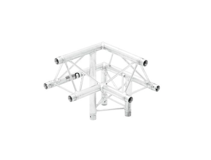 DECOLOCK DQ3 3-point truss systemDECOLOCK DQ3 is a 3-point truss system made of aluminum. The individual elements are connected via three cones, pivots and pins.The advantage of the conical connection system is that the cones completely fit into the main chords so that highest load capacity is guaranteed. The Quick-Lock system enables fast, efficient and highly aesthetic assembly when the truss constructions are frequently assembled and dismantled.The three main chords are made of 35 mm aluminum tube with 2 mm wall thickness and offer sufficient strength at a low weight. The braces have a diameter of 10 mm with 2 mm wall thickness and provide the system with a decorative appearance.With DECOLOCK, you can realize compact installations with low self weight, e. g. for shop displays, shop decorations, exhibitions, interior design, fair booths, discotheques and theatres.DECOLOCK is primarily designed for decorative installations and can be used for permanent or temporary installations due to its highly aestethic appearance. The advantages of this system are the compact construction with 220 and 195 mm outer dimensions, low weight, optimum strength along with easy and quick assembly.The documentation of this truss system is closely related to the Codes of Practice SQ P1 – Truss Systems published by the VPLT/PLASA. The load table as calculation base can be downloaded from the Internet before buying the product!Please note: this truss system must never be combined with other systems!