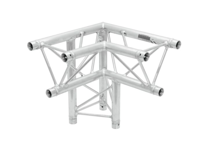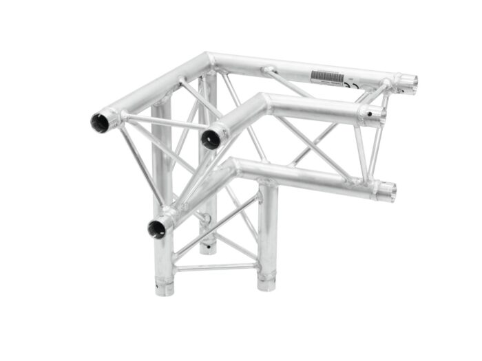 DECOLOCK DQ3 3-point truss systemDECOLOCK DQ3 is a 3-point truss system made of aluminum. The individual elements are connected via three cones, pivots and pins.The advantage of the conical connection system is that the cones completely fit into the main chords so that highest load capacity is guaranteed. The Quick-Lock system enables fast, efficient and highly aesthetic assembly when the truss constructions are frequently assembled and dismantled.The three main chords are made of 35 mm aluminum tube with 2 mm wall thickness and offer sufficient strength at a low weight. The braces have a diameter of 10 mm with 2 mm wall thickness and provide the system with a decorative appearance.With DECOLOCK, you can realize compact installations with low self weight, e. g. for shop displays, shop decorations, exhibitions, interior design, fair booths, discotheques and theatres.DECOLOCK is primarily designed for decorative installations and can be used for permanent or temporary installations due to its highly aestethic appearance. The advantages of this system are the compact construction with 220 and 195 mm outer dimensions, low weight, optimum strength along with easy and quick assembly.The documentation of this truss system is closely related to the Codes of Practice SQ P1 – Truss Systems published by the VPLT/PLASA. The load table as calculation base can be downloaded from the Internet before buying the product!Please note: this truss system must never be combined with other systems!