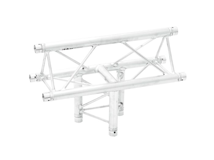 DECOLOCK DQ3 3-point truss systemDECOLOCK DQ3 is a 3-point truss system made of aluminum. The individual elements are connected via three cones, pivots and pins.The advantage of the conical connection system is that the cones completely fit into the main chords so that highest load capacity is guaranteed. The Quick-Lock system enables fast, efficient and highly aesthetic assembly when the truss constructions are frequently assembled and dismantled.The three main chords are made of 35 mm aluminum tube with 2 mm wall thickness and offer sufficient strength at a low weight. The braces have a diameter of 10 mm with 2 mm wall thickness and provide the system with a decorative appearance.With DECOLOCK, you can realize compact installations with low self weight, e. g. for shop displays, shop decorations, exhibitions, interior design, fair booths, discotheques and theatres.DECOLOCK is primarily designed for decorative installations and can be used for permanent or temporary installations due to its highly aestethic appearance. The advantages of this system are the compact construction with 220 and 195 mm outer dimensions, low weight, optimum strength along with easy and quick assembly.The documentation of this truss system is closely related to the Codes of Practice SQ P1 – Truss Systems published by the VPLT/PLASA. The load table as calculation base can be downloaded from the Internet before buying the product!Please note: this truss system must never be combined with other systems!