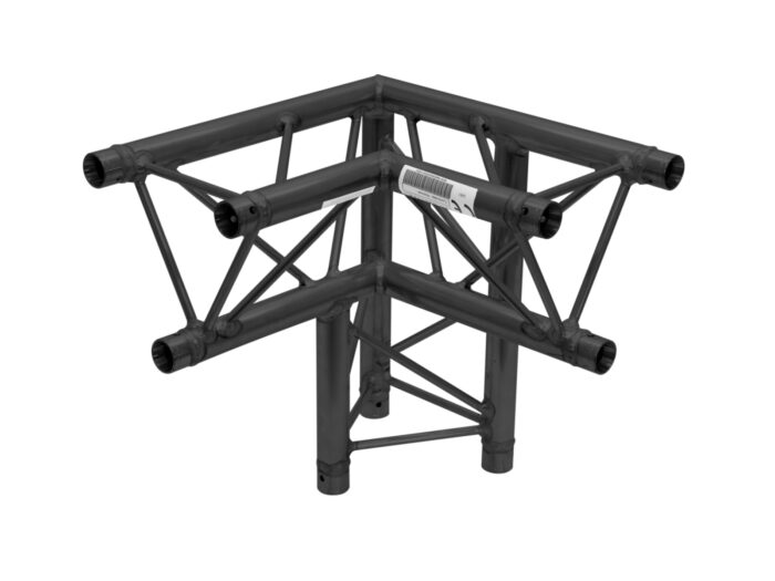DECOLOCK DQ3 3-point truss systemDECOLOCK DQ3 is a 3-point truss system made of aluminum. The individual elements are connected via three cones, pivots and pins.The advantage of the conical connection system is that the cones completely fit into the main chords so that highest load capacity is guaranteed. The Quick-Lock system enables fast, efficient and highly aesthetic assembly when the truss constructions are frequently assembled and dismantled.The three main chords are made of 35 mm aluminum tube with 2 mm wall thickness and offer sufficient strength at a low weight. The braces have a diameter of 10 mm with 2 mm wall thickness and provide the system with a decorative appearance.With DECOLOCK, you can realize compact installations with low self weight, e. g. for shop displays, shop decorations, exhibitions, interior design, fair booths, discotheques and theatres.DECOLOCK is primarily designed for decorative installations and can be used for permanent or temporary installations due to its highly aestethic appearance. The advantages of this system are the compact construction with 220 and 195 mm outer dimensions, low weight, optimum strength along with easy and quick assembly.The documentation of this truss system is closely related to the Codes of Practice SQ P1 – Truss Systems published by the VPLT/PLASA. The load table as calculation base can be downloaded from the Internet before buying the product!Please note: this truss system must never be combined with other systems!