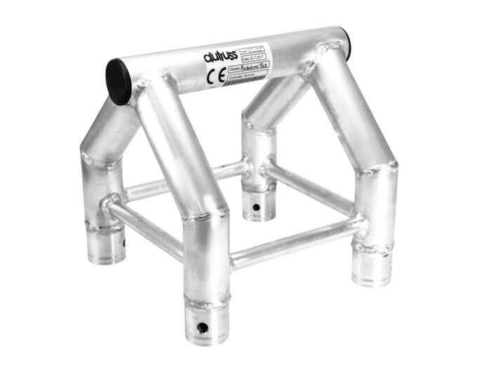 QUADLOCK QL-ET34 4-point truss systemQUADLOCK QL-ET34 is a 4-point truss system made of aluminum. The individual elements are connected via four cones, pivots and pins. QUADLOCK QL-ET34 is made of EN-AW 6082 T6 (AlMgSi1 T6) alloy for even higher loads.The advantage of the conical connection system is that the cones completely fit into the main chords so that highest load capacity is guaranteed. The Quick-Lock system enables fast, efficient and highly aesthetic assembly when the truss constructions are frequently assembled and dismantled.The four main chords are made of 50 mm aluminum tube with 2 mm wall thickness and offer a good relation between strength and weight. The braces have a diameter of 20 mm with 2 mm wall thickness and provide stability for this truss system.With 290 mm outer dimensions, QUADLOCK QL-ET34 is a stable truss system for higher loads and extended durability. This system is mainly designed for intense use in stage installations, fair installations, event installations but also for permanent installations in discotheques and theatres.Its polished surface makes this universal system a real eyecatcher. Due to its wide range of standard system lengths, corners and accessory, this system is highly versatile and offers unlimited design possibilities.The production of this truss system is TUV-monitored. The load table as calculation base can be downloaded from the Internet before buying the product! ALUTRUSS elements are made in Europe and welded by specially trained welders certified by the German SLV association.Please note: this truss system must never be combined with other systems!