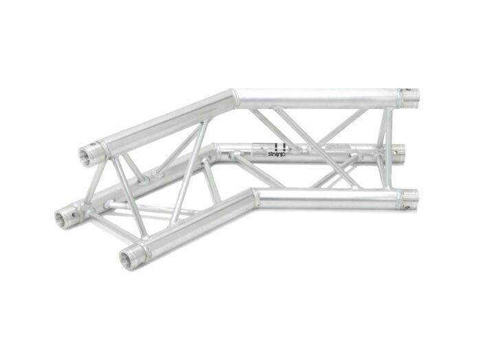 TRILOCK 6082 3-point truss system TRILOCK 6082 is a 3-point truss system made of aluminum. The individual elements are connected via three cones, pivots and pins. TRILOCK 6082 is made of EN-AW 6082 T6 (AlMgSi1 T6) alloy for even higher loads. The advantage of the conical connection system is that the cones completely fit into the main chords so that highest load capacity is guaranteed. The Quick-Lock system enables fast, efficient and highly aesthetic assembly when the truss constructions are frequently assembled and dismantled. The three main chords are made of 50 mm aluminum tube with 2 mm wall thickness and offer a good relation between strength and weight. The braces have a diameter of 16 mm with 2 mm wall thickness and leave enough space for installing couplers, hooks and clamps. With 290 and 257 mm outer dimensions, TRILOCK QTTR is a stable truss system for higher loads and extended durability. This system is mainly designed for intense use in stage installations, fair installations, event installations but also for permanent installations in discotheques and theatres. Its polished surface makes this universal system a real eye-catcher. Due to its wide range of standard system lengths, corners, circles and accessory, this system is highly versatile and offers unlimited design possibilities. The production of this truss system is TUV-monitored. The load table as calculation base can be downloaded from the Internet before buying the product! Please note: this truss system must never be combined with other systems!
