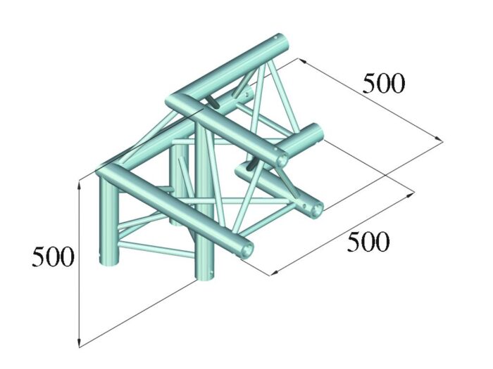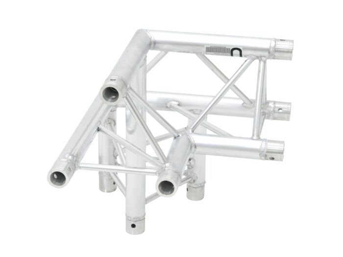 TRILOCK 6082 3-point truss system TRILOCK 6082 is a 3-point truss system made of aluminum. The individual elements are connected via three cones, pivots and pins. TRILOCK 6082 is made of EN-AW 6082 T6 (AlMgSi1 T6) alloy for even higher loads. The advantage of the conical connection system is that the cones completely fit into the main chords so that highest load capacity is guaranteed. The Quick-Lock system enables fast, efficient and highly aesthetic assembly when the truss constructions are frequently assembled and dismantled. The three main chords are made of 50 mm aluminum tube with 2 mm wall thickness and offer a good relation between strength and weight. The braces have a diameter of 16 mm with 2 mm wall thickness and leave enough space for installing couplers, hooks and clamps. With 290 and 257 mm outer dimensions, TRILOCK QTTR is a stable truss system for higher loads and extended durability. This system is mainly designed for intense use in stage installations, fair installations, event installations but also for permanent installations in discotheques and theatres. Its polished surface makes this universal system a real eye-catcher. Due to its wide range of standard system lengths, corners, circles and accessory, this system is highly versatile and offers unlimited design possibilities. The production of this truss system is TUV-monitored. The load table as calculation base can be downloaded from the Internet before buying the product! Please note: this truss system must never be combined with other systems!