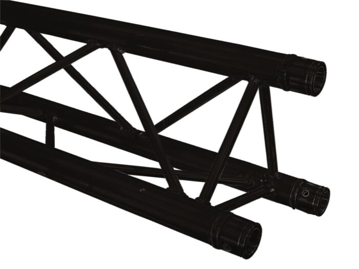 TRILOCK 6082 3-point truss systemTRILOCK 6082 is a 3-point truss system made of aluminum. The individual elements are connected via three cones, pivots and pins. TRILOCK 6082 is made of EN-AW 6082 T6 (AlMgSi1 T6) alloy for even higher loads. The advantage of the conical connection system is that the cones completely fit into the main chords so that highest load capacity is guaranteed. The Quick-Lock system enables fast, efficient and highly aesthetic assembly when the truss constructions are frequently assembled and dismantled. The three main chords are made of 50 mm aluminum tube with 2 mm wall thickness and offer a good relation between strength and weight. The braces have a diameter of 16 mm with 2 mm wall thickness and leave enough space for installing couplers, hooks and clamps. With 290 and 257 mm outer dimensions, TRILOCK QTTR is a stable truss system for higher loads and extended durability. This system is mainly designed for intense use in stage installations, fair installations, event installations but also for permanent installations in discotheques and theatres. Its polished surface makes this universal system a real eyecatcher. Due to its wide range of standard system lengths, corners, circles and accessory, this system is highly versatile and offers unlimited design possibilities. The production of this truss system is TUV-monitored. The load table as calculation base can be downloaded from the Internet before buying the product!