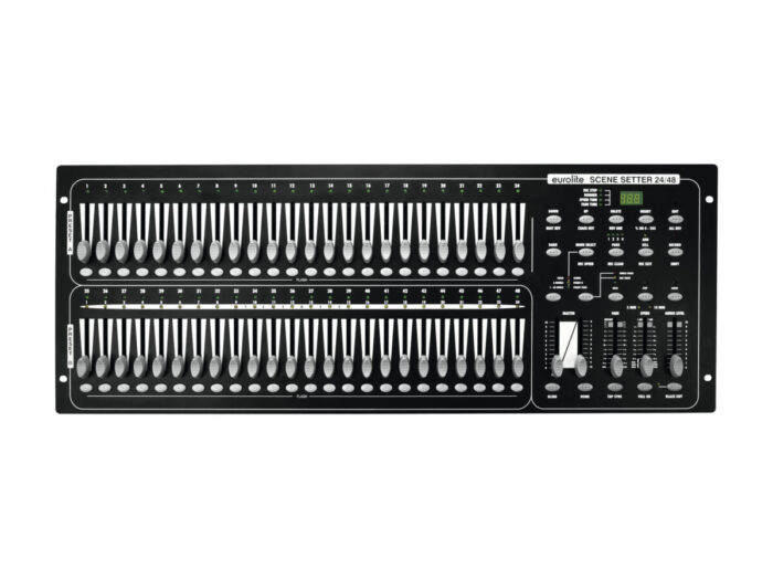 Theater light console for 48 DMX channels, brightness control for each scene