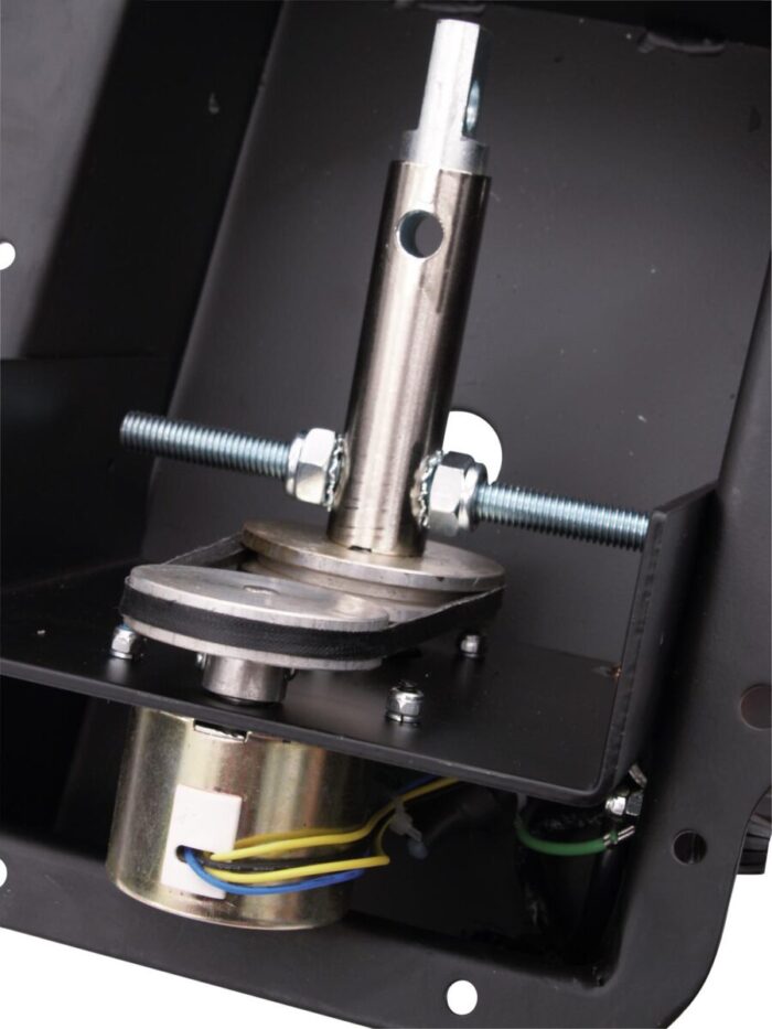 This solid mirror ball motor with a continuous shaft can carry a load of up to 150 kg. This equals a mirror ball of approximately 150 cm, 12-fold safety margin included. The motor has a speed of 1 RPM (rotations per minute). This creates a peaceful effect, especially when you choose for a pin spot to shine on the mirror ball.