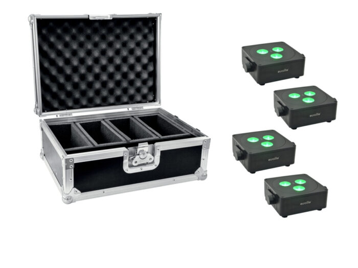 EUROLITE Set 4x AKKU IP Flat Light 3 bk + Case