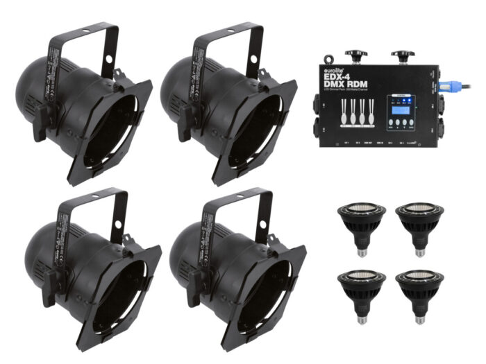 EUROLITE Set 4x PAR-38 Spot bk dim2warm + EDX-4 DMX RDM LED Dimmer pack