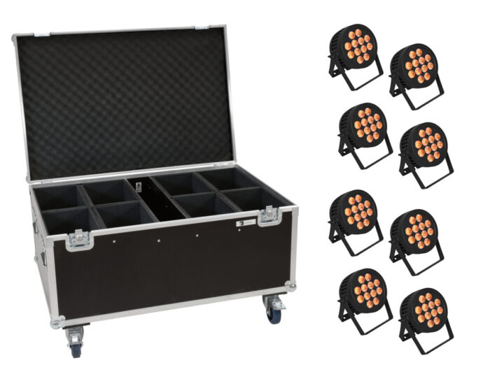 EUROLITE Set 8x LED IP PAR 12x8W QCL Spot + Case with wheels