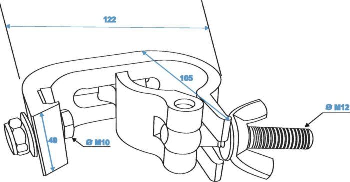- Hook for installing projectors, lighting effects etc. via a truss system
