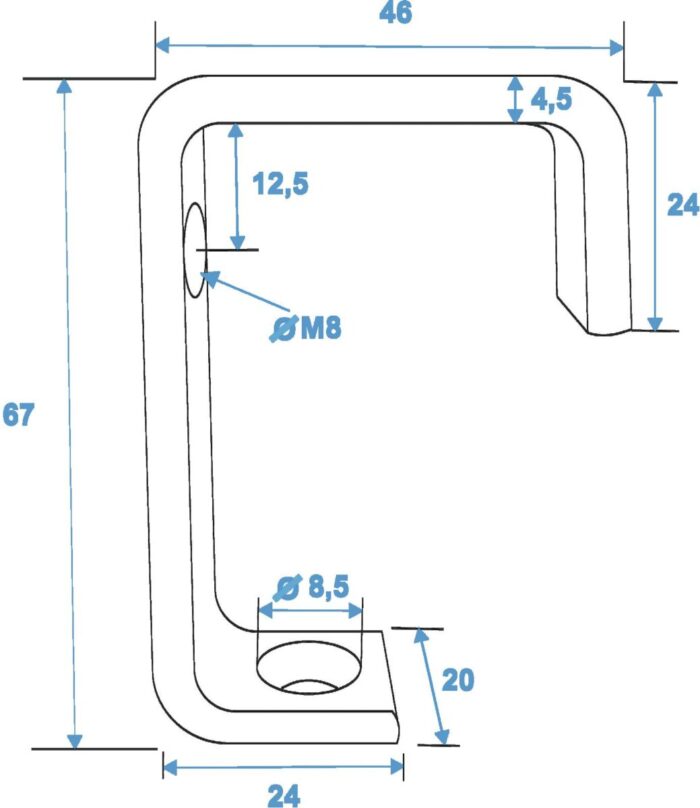 Mounting hook for 25 mm tube, maximum load WLL 20 kg