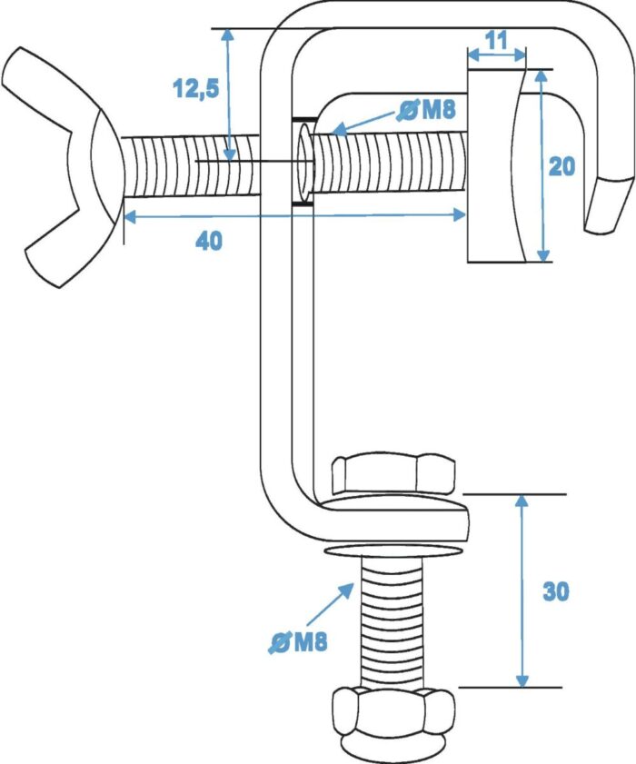 - Hook for installing projectors, lighting effects etc. via a truss system