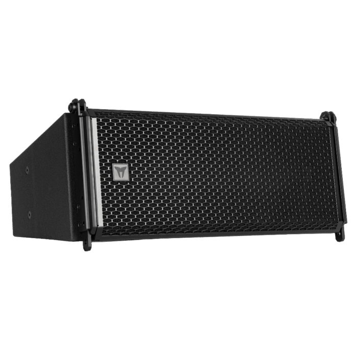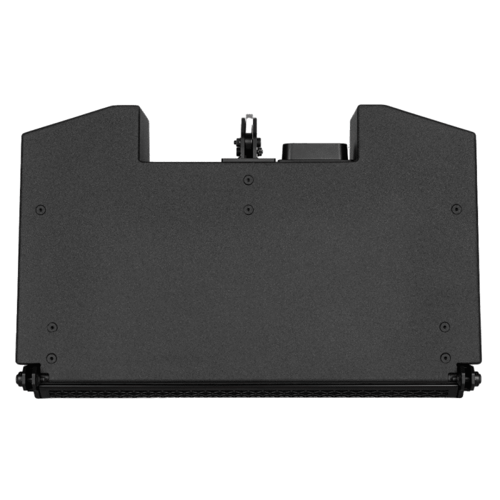 The sturdy, weather-resistant birch multi-ply enclosure features optimized hardware for safety and adaptability, including a rear mechanism for angle selection. High-strength Strenx steel rigging hardware ensures secure deployment of up to 16 modules in tension or compression mode. Power connection is provided via a watertight screw terminal connection panel designed for cables up to AWG 9. The powder-coated protective grille includes a protective foam layer. For enhanced weather resistance, the IP version offers an additional acoustically transparent, water-repellent fabric.