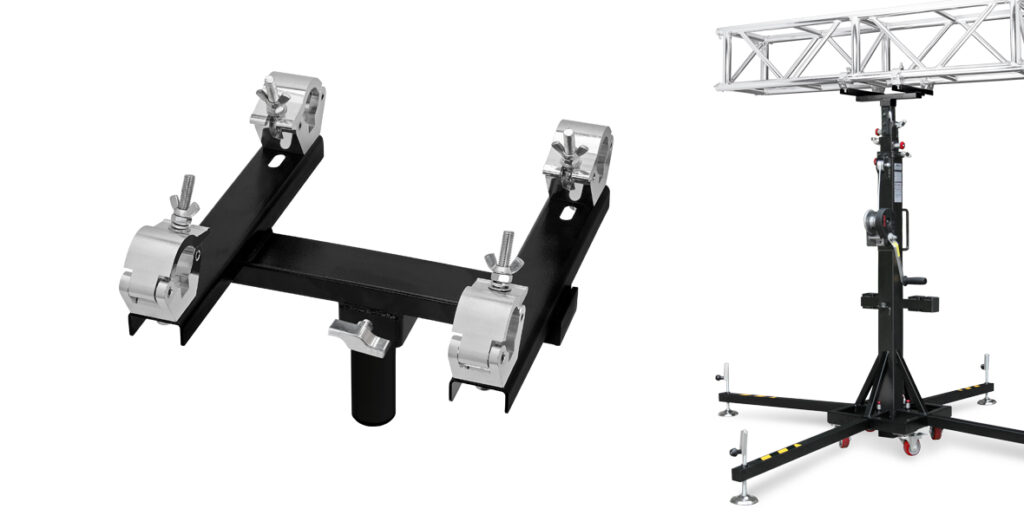ADJUSTABLE TRUSS ADAPTOR FITTED WITH 4 ALUMINIUM COUPLERS & A Ø 35 mm SPIGOT. FOR TRUSS FROM 290 TO 400 mm