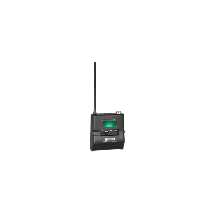 The Mipro ACT-80T is a multi-function digital bodypack transmitter, which is powered by two alkaline (AA) batteries.