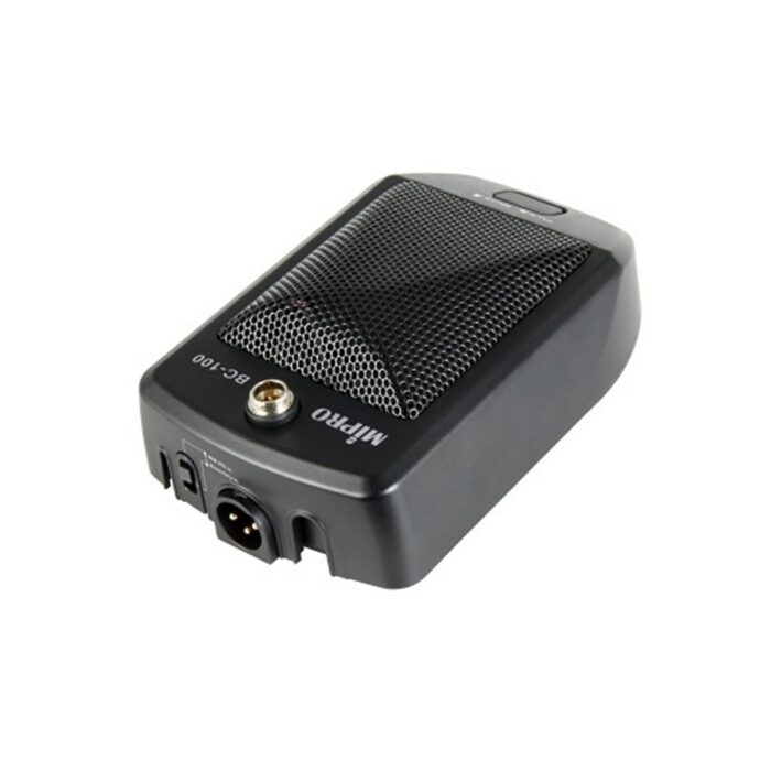 The BC-100T accepts the optional longer gooseneck MM-204 / MM-205/ MM-206 microphones; their cardioid ECM (electret condenser microphone) provides excellent sensitivity and clear, highly intelligible sound reinforcement. Powered by an ICR 18500 rechargeable lithium battery, the BC-100T has built-in charging circuitry for recharging the battery.