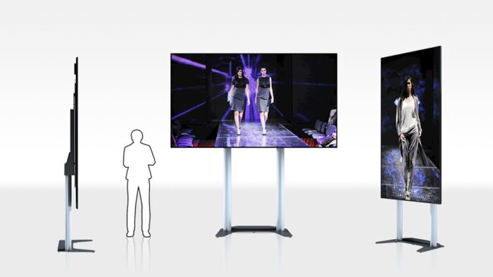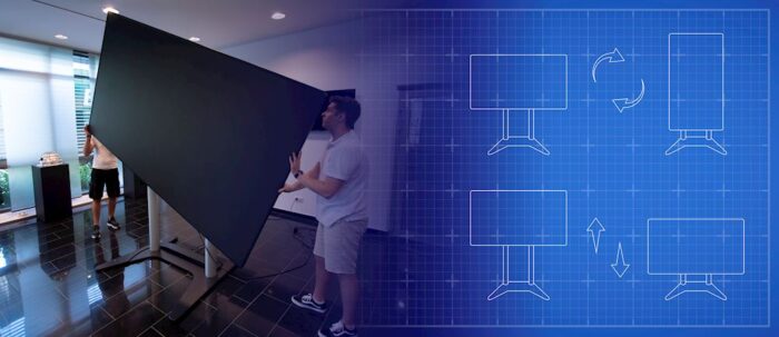 For added flexibility the built-in display stand features height adjustment and the FHDS130 can be positioned in landscape or portrait mode.