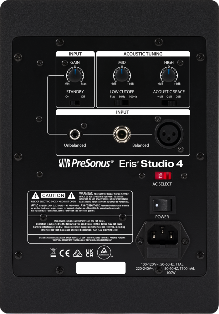 The Eris® Studio 4 drives up to 99 dB of crystal-clear, transparent sound with its 4.5-inch woven composite low-frequency driver and 1-inch silk-dome tweeter, powered by 50W Class AB biamplification. The ported enclosure creates a deep, tight low-end, while an EBM waveguide provides a wide, controlled sweet spot and detailed high-frequency reproduction. Designed for superior performance in both home studio and small professional mix rooms, the Eris Studio 4 combines flexible connectivity with sonic accuracy that puts it a class all its own.
