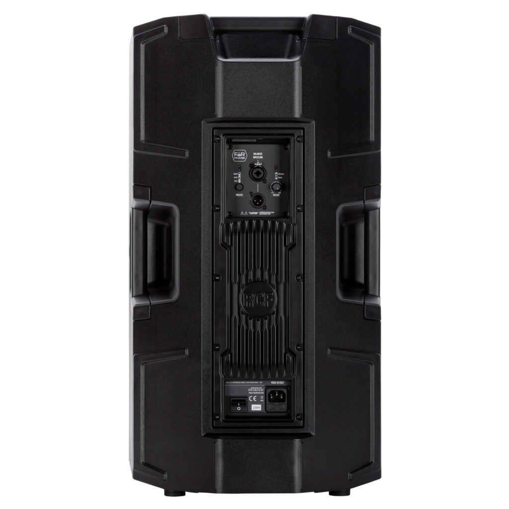 ART 935-A is masterfully engineered to deliver stellar audio performance and versatility for intensive audio applications. The combination of a 3″ titanium/neodymium compression driver, 15″ woofer, two-channel 2100W amplifier, and the constant directivity True Resistive Waveguide produces coherent 100° x 60° coverage for the listening area with up to 133 dB SPL, distortion-free sound. Used as a stand-alone speaker for a FOH system, satellite (with subwoofer), stage monitor, or flown, the ART 935-A packs high-performance and reliability in a compact enclosure. Designed to be the most flexible loudspeaker in its class, it also features multiple rigging points for fixed installation. Merging RCF proprietary FiRPHASE and Bass Motion Control DSP processing, perfectly tuned for each model, the audience will experience absolute clarity and deep, powerful bass response. The sleek cabinet uses a special polypropylene composite material with an M-brace internal reinforcement, making it easy to carry and secure to install on a pole, flown-, wall-, or truss-mounted using the multiple rigging points available.