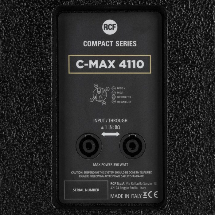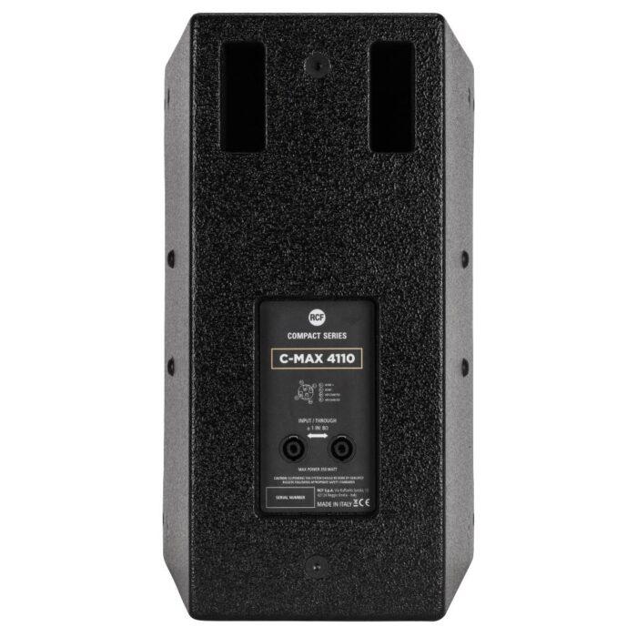 The full-range passive two-way speaker RCF C MAX 4110 has been specifically designed as club systems for entertainment, to reach the best near field quality, vocal coherence, and a stable sound pressure level even at high volumes. It features a 10” woofer and a 1” compression driver. The passive C MAX Series speakers represent a further step of the famous COMPACT Series. Thanks to the bass reflex port, perfectly tuned on the back of the cabinet, the system gives its best when installed near walls, without the need of a subwoofer. It’s perfect for KTV, Karaoke rooms, conference halls, AV installations, public areas and clubs.