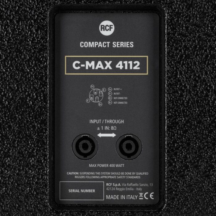 The full-range passive two-way speaker RCF C MAX 4112 has been specifically designed as club systems for entertainment, to reach the best near field quality, vocal coherence, and a stable sound pressure level even at high volumes. It features a 12” woofer and a 1” compression driver. The passive C MAX Series speakers represent a further step of the famous COMPACT Series. Thanks to the bass reflex port, perfectly tuned on the back of the cabinet, the system gives its best when installed near walls, without the need of a subwoofer. It’s perfect for KTV, Karaoke rooms, conference halls, AV installations, public areas and clubs.