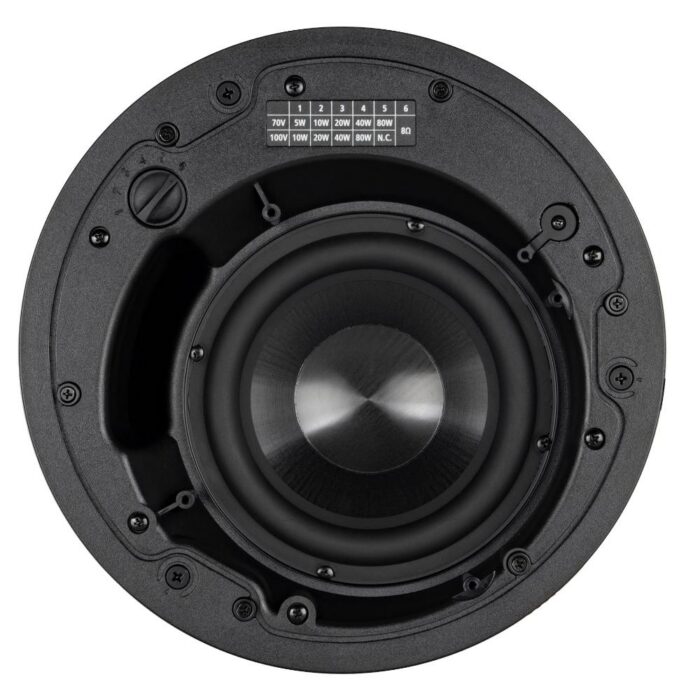 Featuring a 6.5’’ woofer and 80 W RMS power, it is also equipped with a transformer for connection to constant voltage lines (70/100 V). The high quality of its transducer guarantees faithful and precise low frequencies reproduction and allows to reach truly remarkable sound pressure levels for such compact product.