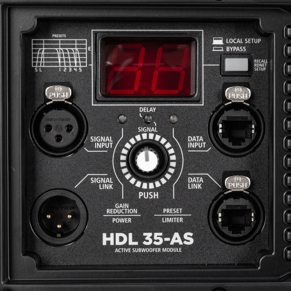 The HDL 35-AS is the ideal flyable bass complement for the HDL 26-A array system. It features a baltic birch plywood cabinet housing one 4.0” voice coil, 15” Neodymium woofer to handle frequencies from 40 Hz to 140 Hz with the maximum linearity and lowest distortion. The 2200 Watts class-D amplifier onboard delivers excellent playback clarity and up to 134 decibels SPL max. Due to its compatibility with RDNet – remote monitoring and control, the HDL 35-AS is part of the professional HDL System.
