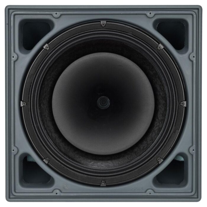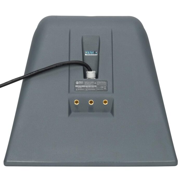 The single-piece rotomolded cabinet is fully UV protected, equipped with multiple brass inserts and a corrosion-resistant 316P stainless steel U-bracket. Connections to the amplifier are made through a watertight multi-pole connector. The front aluminum grille is powder coated with water-repellent backing material, front logo is rotatable. All P series speakers meet IP55 standard requirements (International Protection Rating), suitable for indoor and outdoor applications.