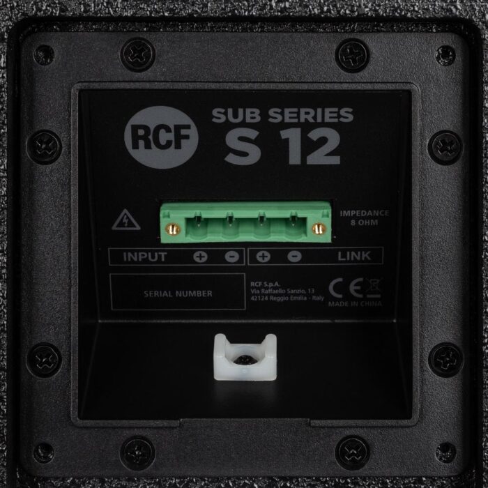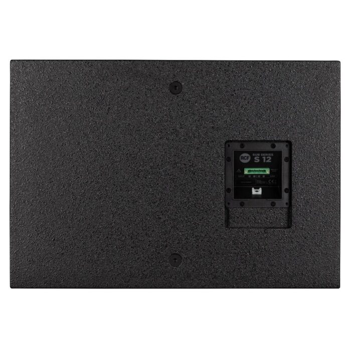 S 12 is a high power, compact subwoofer system ideal for those installations where the physically small size and impact of a 12” driver are desired. Extending the frequency response of these systems to below 40Hz this highly efficient design is capable of providing output levels normally associated with considerably larger enclosures. A system suited to background music playback in applications ranging from clubs, bars and cafes, right through to theatres and AV presentations. The low-frequency transducer is a 12” woofer with a 2,5” voice coil. Woofer design is the result of the latest refinements in RCF experiences in compact active and passive subwoofer design, resulting in a fast and controlled reproduction of the bass frequency range.