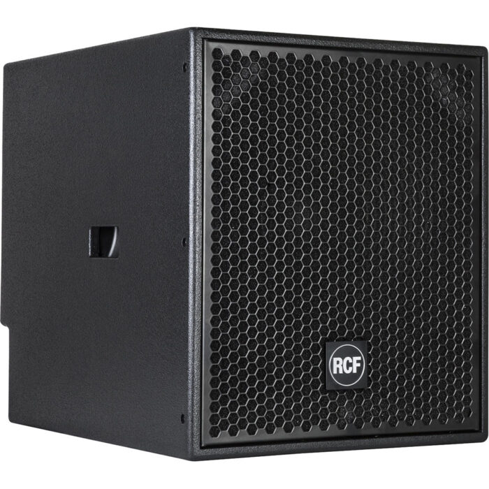 The S8015 II High-Efficiency Subwoofer from RCF is a compact, high-output, bass-reflex subwoofer. The system is equipped with a hyper-vented 15″ RCF precision woofer. It features a massive ceramic magnet and high excursion 4″ copper voice coil. The cabinet is designed to achieve tight and maximized output. The system is able to produce a max SPL of 133 dB and handles 1000 W AES.The loudspeaker enclosure shape is rectangular, and the cabinet is constructed from multi-ply Baltic birch plywood that is finished with resistant and textured polyurethane black paint. It features a M20 pole-mount receptacle, rubber feet, and two recessed handles. The front steel grille is epoxy powder coated.