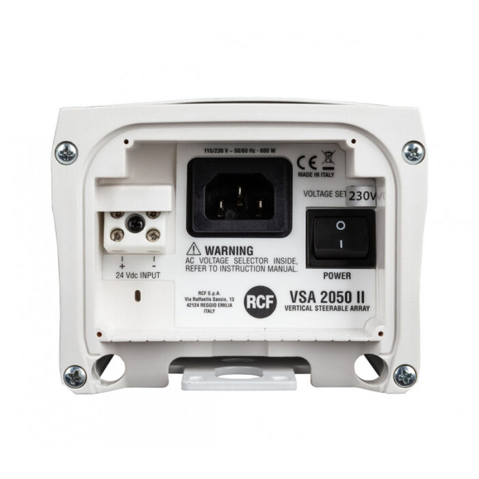 Column VSA 2050 is a vertically driven array with 20 50W class-D amplifiers and 20 3.5″ speakers. The RCF VSA sound column is capable of accurately directing sound into the listening area. Using proprietary RDNet software, the user can control the radiation pattern by controlling the width and tilt of the sound beam, which allows you to accurately sound the required spaces. This is implemented using an integrated DSP, which introduces micro-delays to the signals coming to different speakers. This is especially important in acoustically complex halls with high reverberation, where extra reflections from walls, floors or ceilings can be critical. The aluminum body of the column is ideally combined with any interior design solutions and can be painted in any color on request according to RAL. In addition to the standard mounting included in the kit, there is a hinged bracket that allows you to rotate the column in a horizontal plane. VSA columns are configured and controlled using RDNet software. A VSA-RC module is also available, which connects to a mobile phone and gives the user limited control functionality via the VSA REMOTE app.