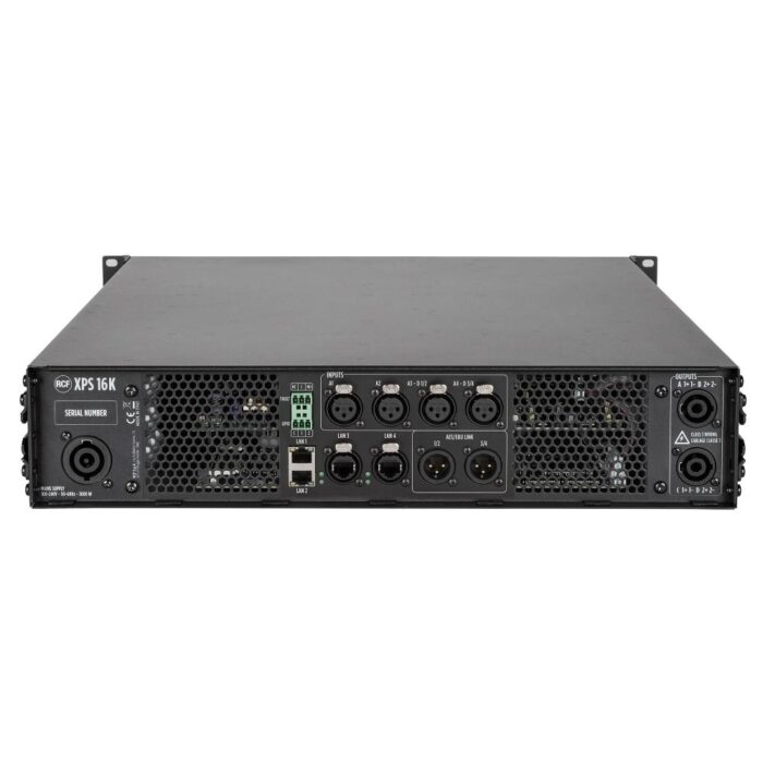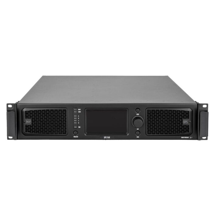 XPS 16K provides extreme power density with 4 x 4000 W continuous power outputs in 2 RU space for both touring and installed sound systems. The unit features 4 analog and digital AES/EBU inputs/outputs, a Dante Network ready design, and complete signal processing, tuning, and routing capability all at 96 kHz. Redundancy and full scalability are granted by the advanced and modular design of the circuitry. A complete set of RCF speaker presets is available, with powerful signal processing for complete system tuning.