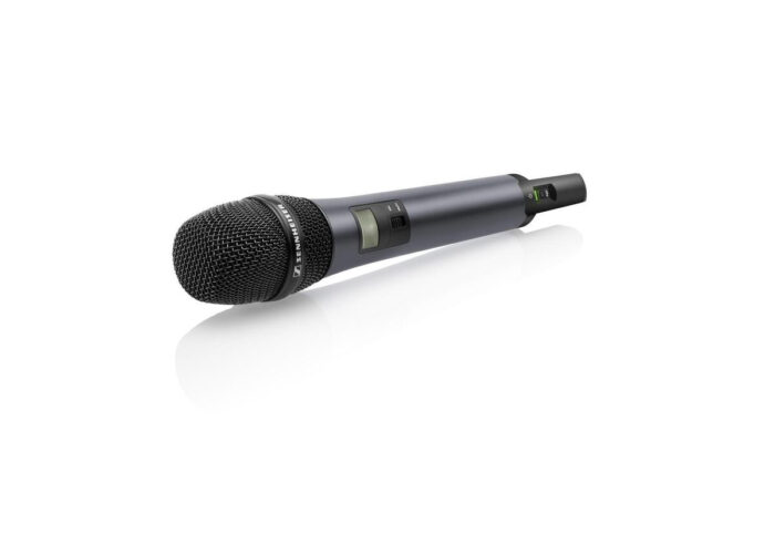 Handheld transmitter equipped with e825 cardioid dynamic capsule, integrated mute switch and mic clip