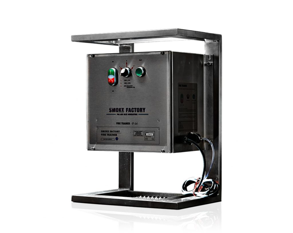 Of course the Fire Trainer, like almost all Smoke Factory fog machines, can also be operated in stand-alone mode. In stand-alone operation, the fogging process is started by pressing the start button once. If this is not actuated repeatedly, the machine will fog until the limit temperature is reached.
