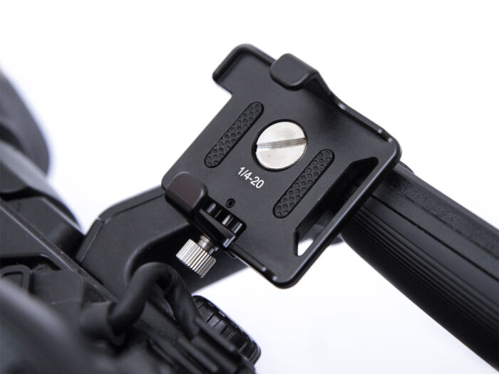 This lightweight aluminium bracket for the Tentacle SYNC E is exclusively manufactured by LanParte. It can be mounted to any camera rig or directly to a camera with the included 1/4” screw. Easily slide-in mechanism for the SYNC E box. A little clamp offers secure fastening. This version comes with an additional cold shoe mount. So you can assemble them to one unit that can be attached to the camera via cold shoe mount or use the basic bracket version with the 1/4 inch screw.