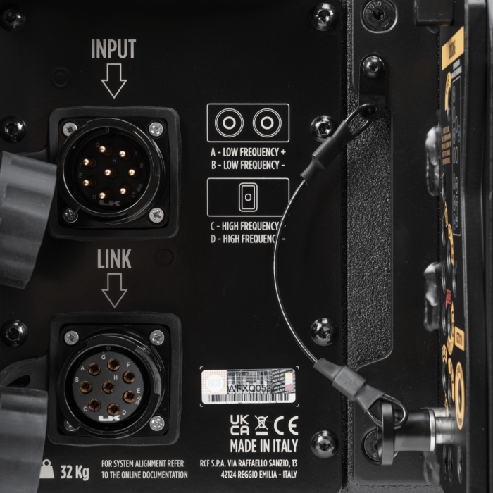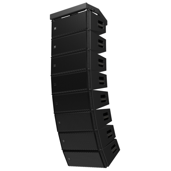 The symmetrical enclosure design and component topology produce consistent coverage from left to right. Symmetrical component positioning and special DSP crossover filtering provide constant directivity and perfect continuity of the hemicylindrical wave directivity without lobes and discontinuities. Frequency modulations are avoided by the optimized active crossover design.